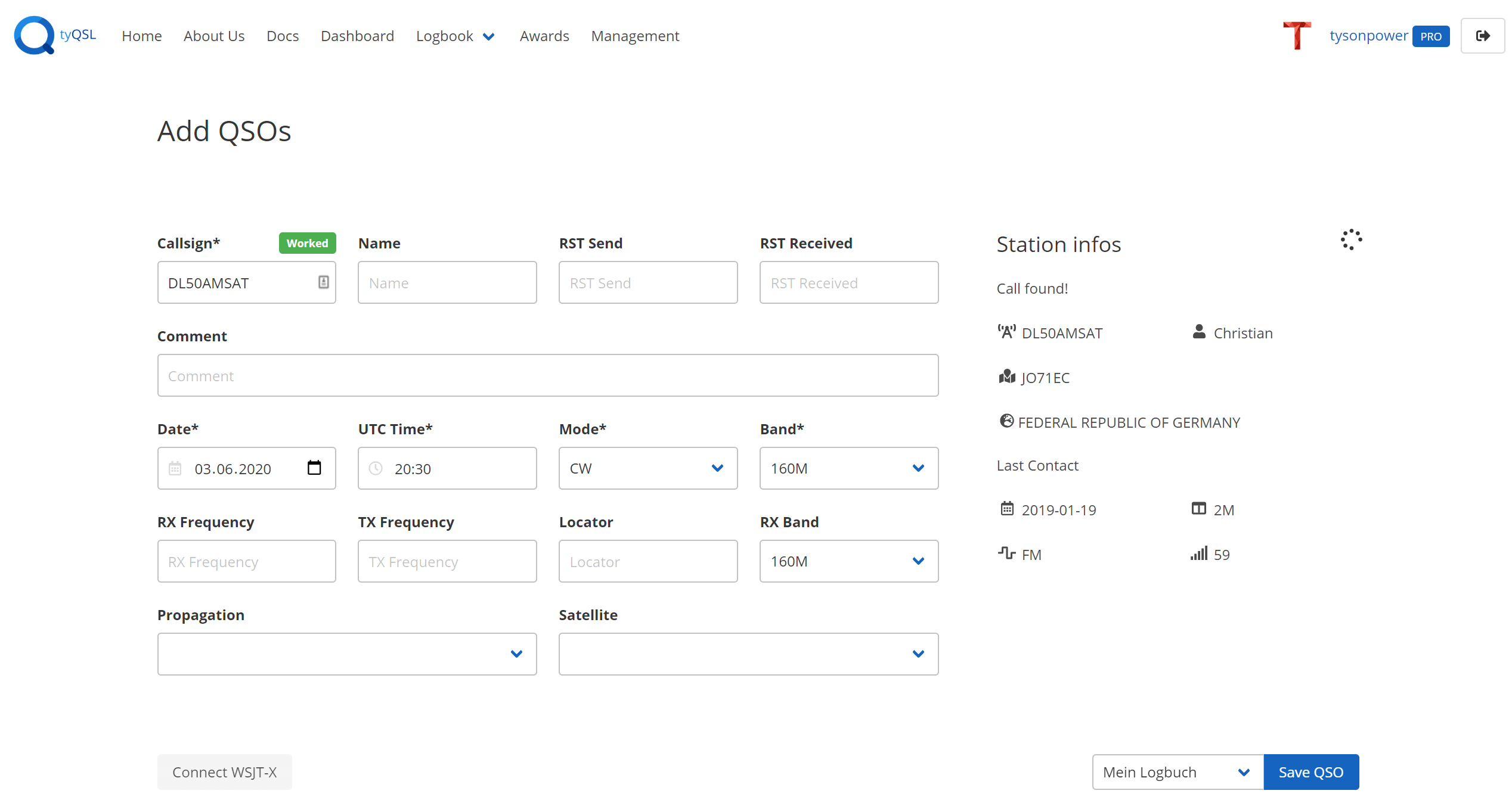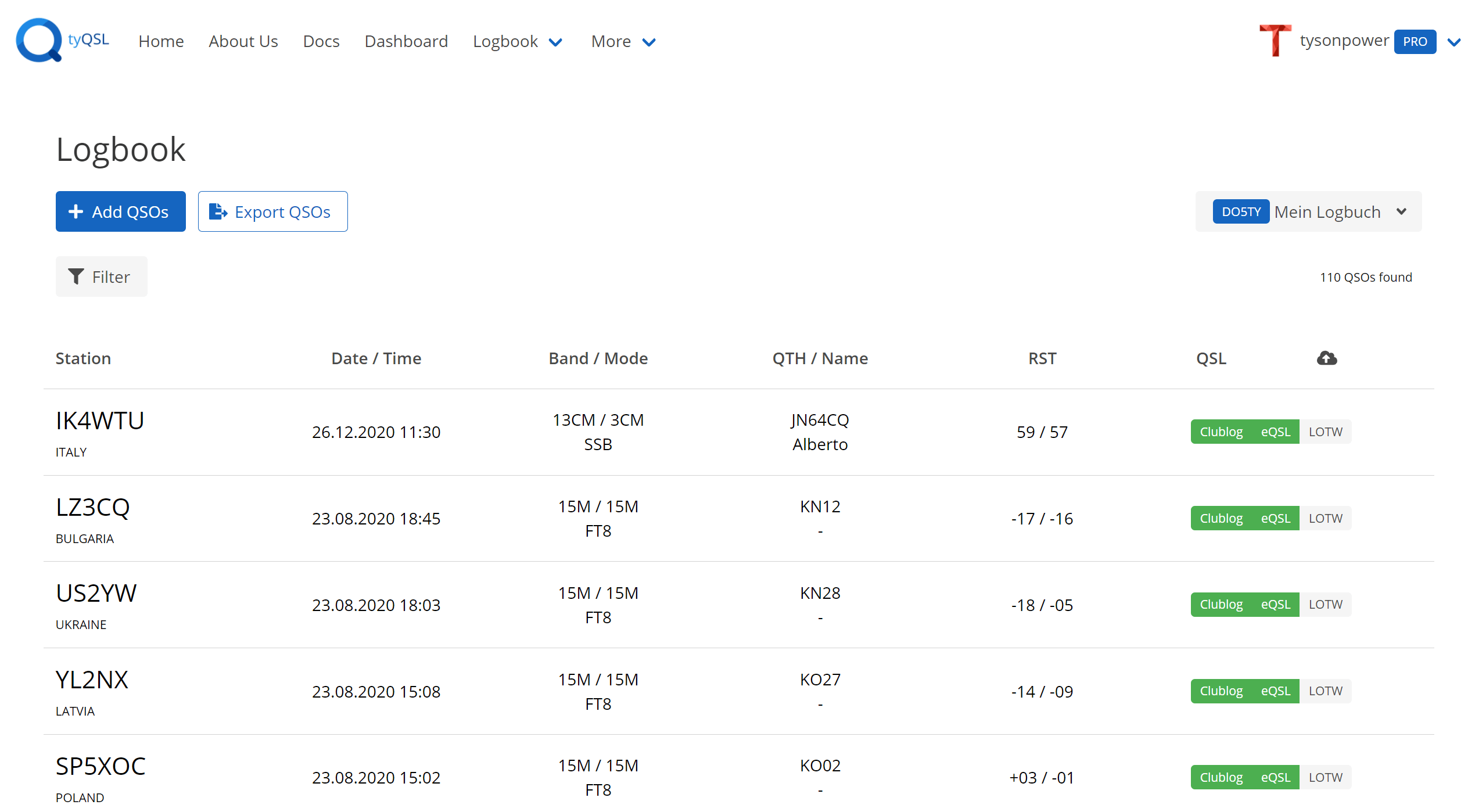 The Logbook page let's you search all your Logbooks you have created and is your primary entry into your QSOs.